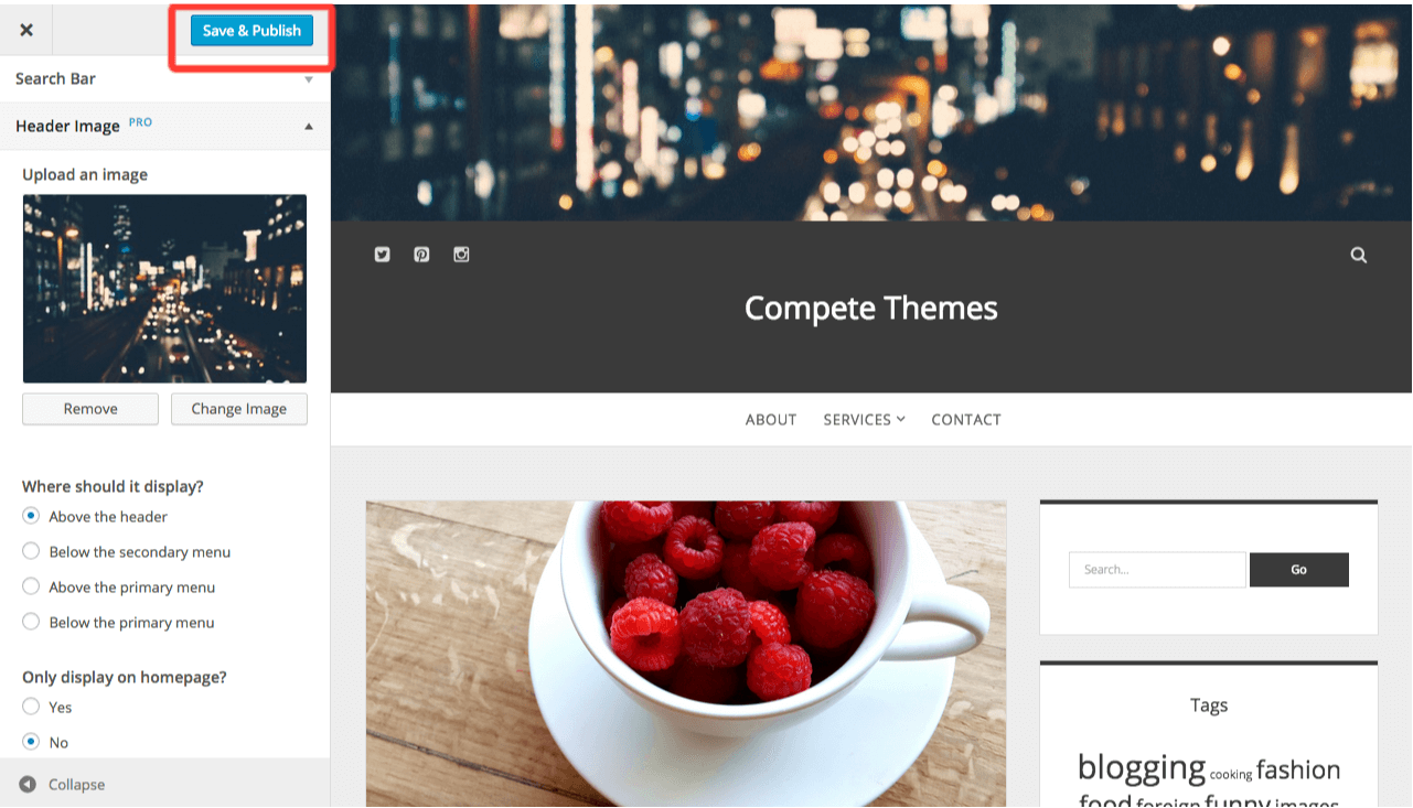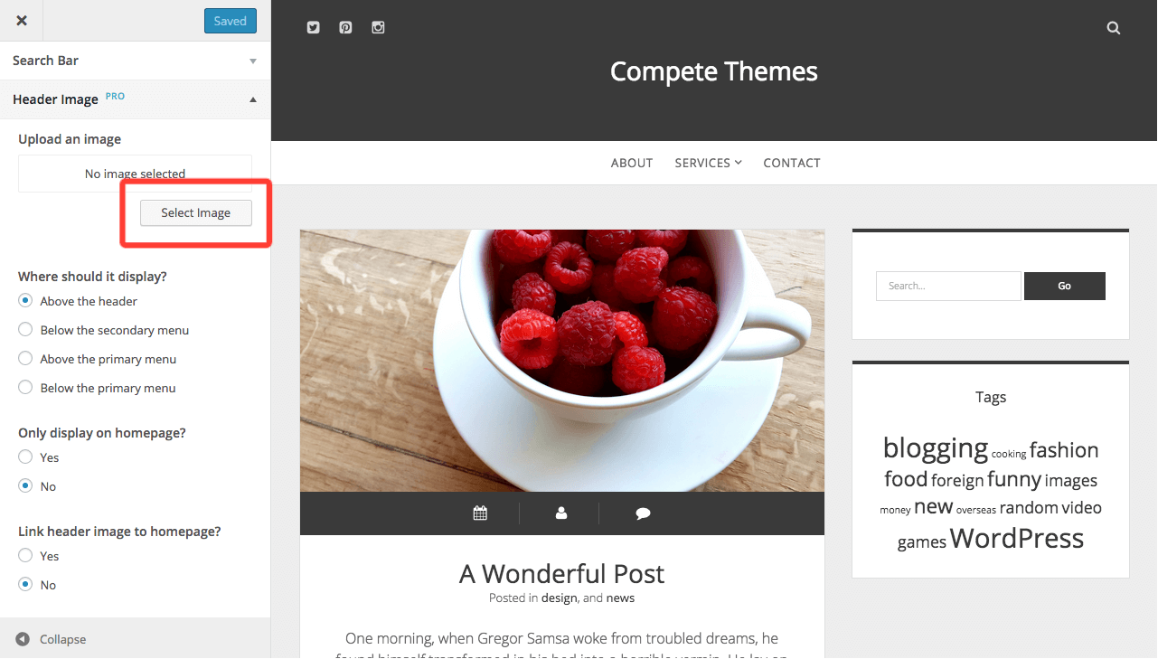 You can display the Header Image in one of four different locations using the Where should it display? setting: