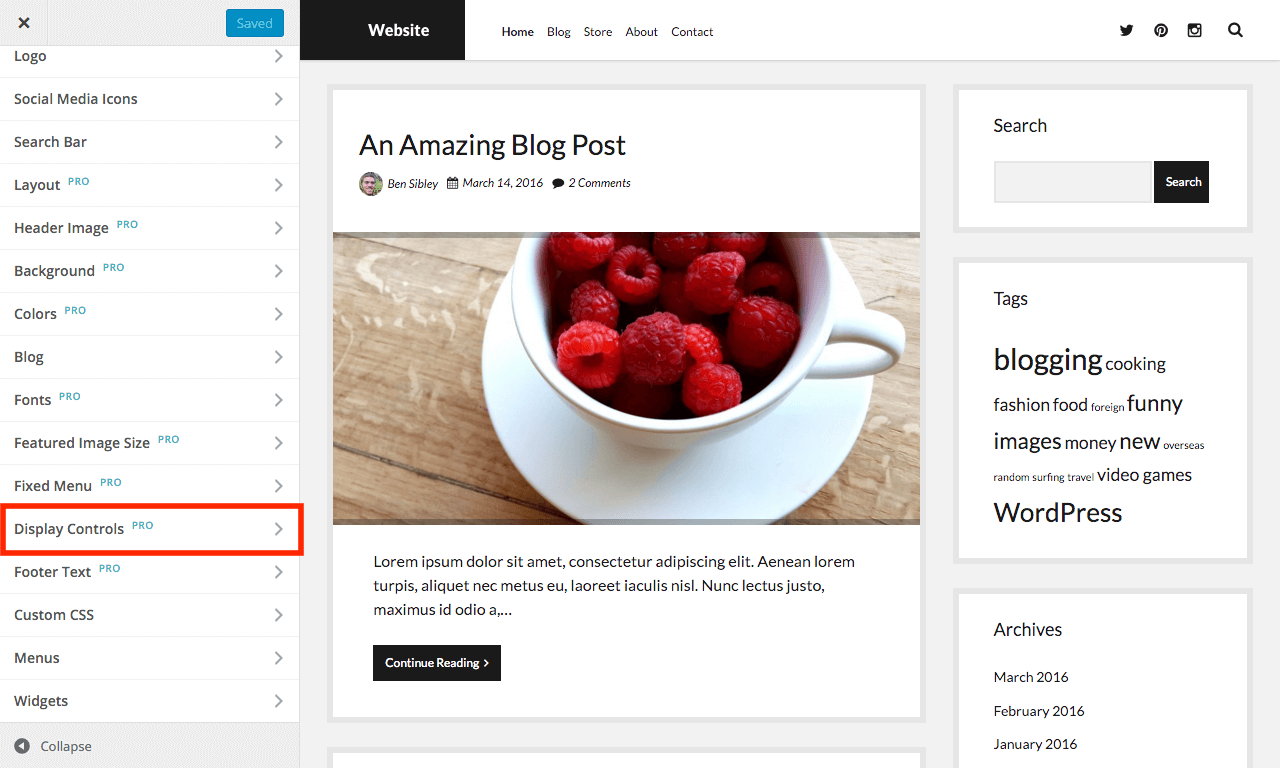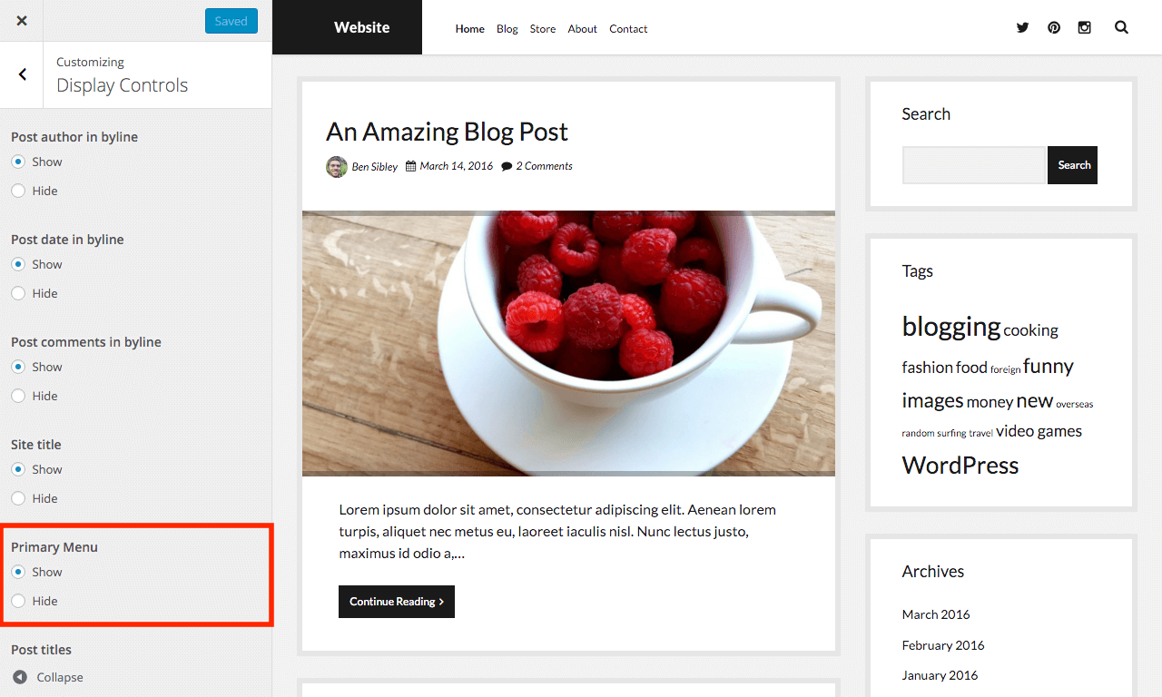 Many site elements can be hidden or shown using the Display Controls added by Shift Pro.