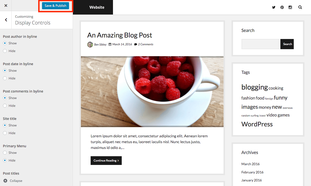 - When you're finished showing/hiding elements, click the Save & Publish button at the top of the screen