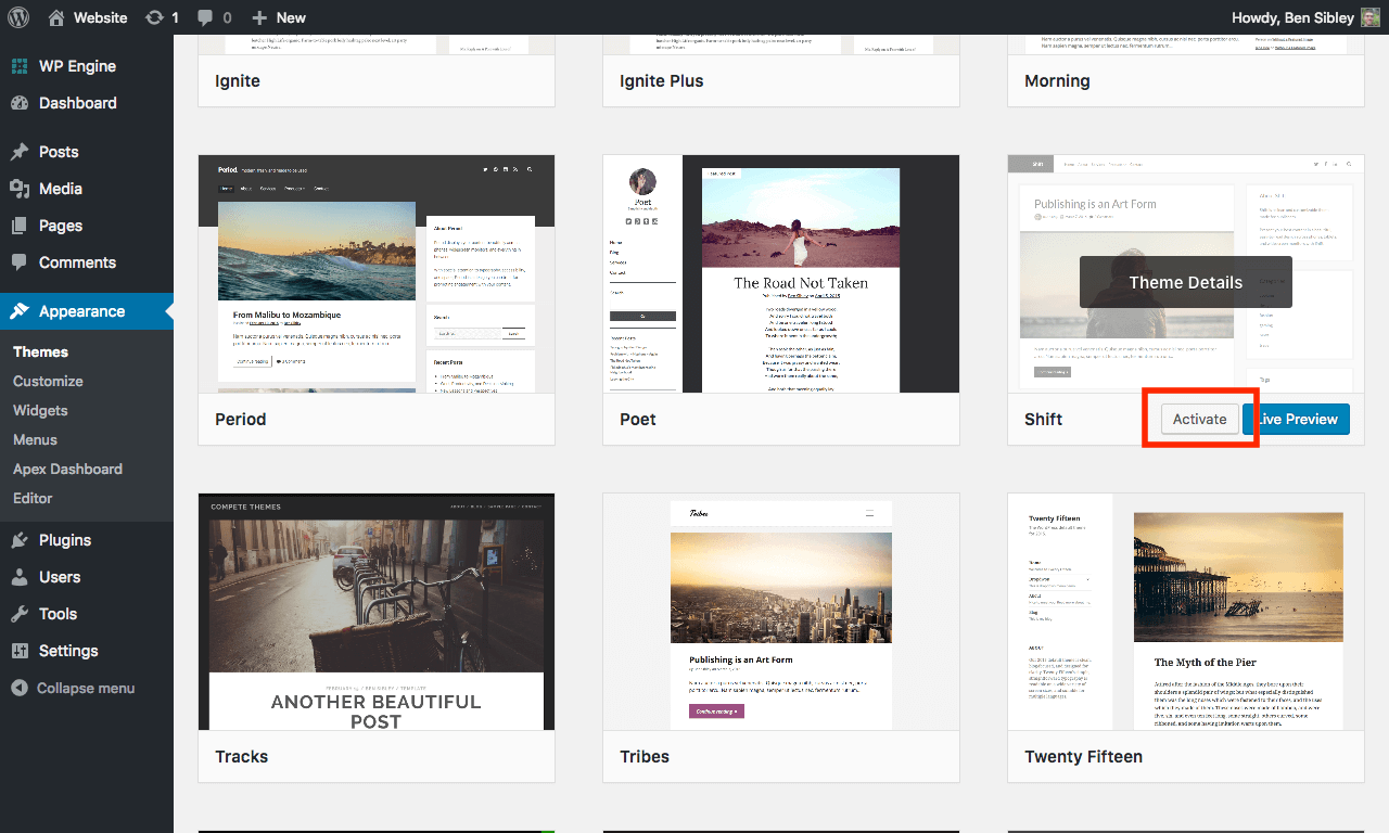 Shift is now the active theme on your site.